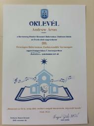 A hatodikosok kategóriájában Bajkai Rozália Lujza aranysávos, Langschadl Anikó pedig ezüstsávos minősítést kapott. A hetedikes Andrew Áron ezüstsávos minősítésben részesült. Advent első vasárnapján Anikó a református istentiszteleten is megörvendeztette énekével a híveket. Rozi és Áron advent harmadik vasárnapján énekelnek a református templomban.