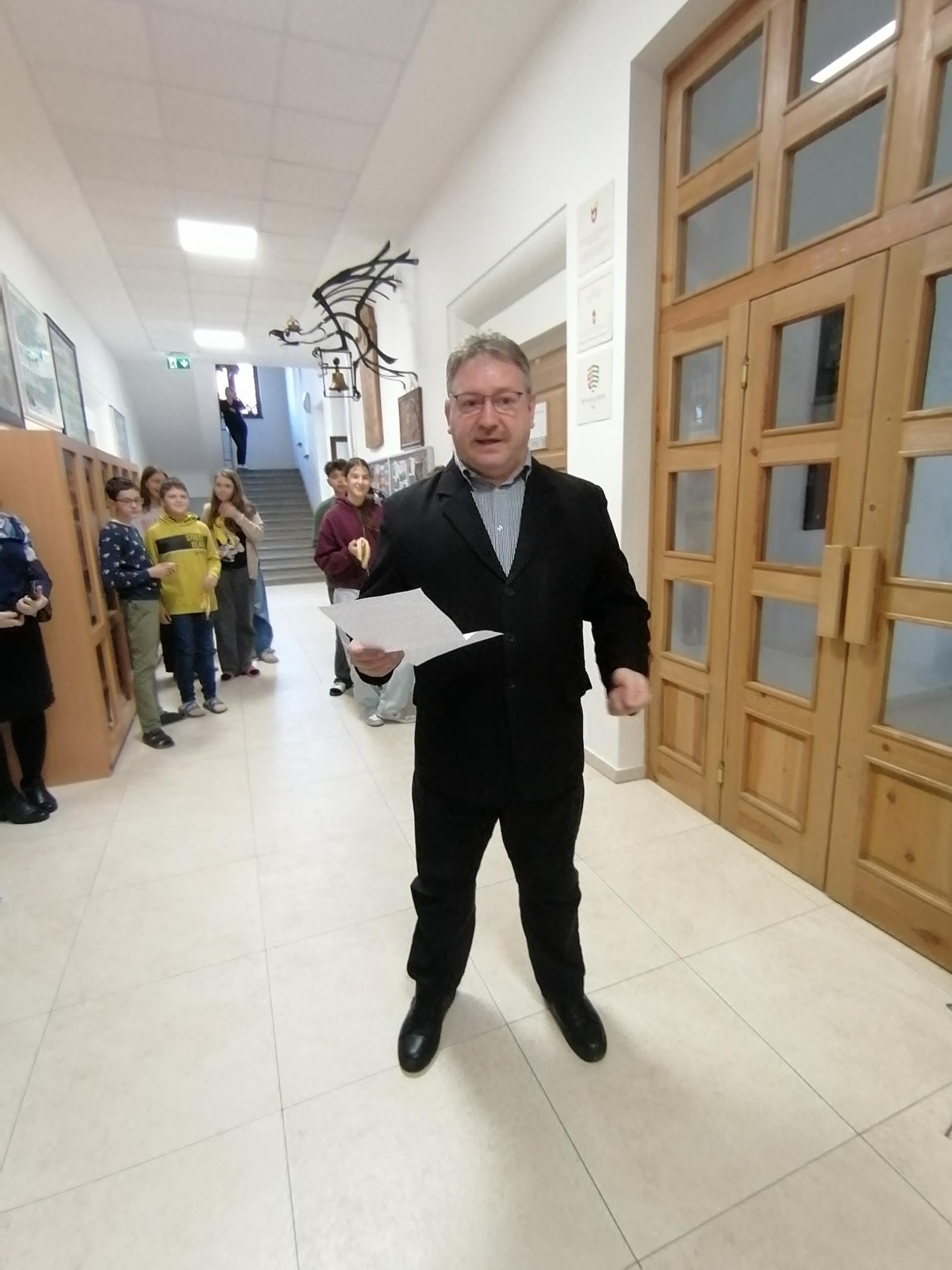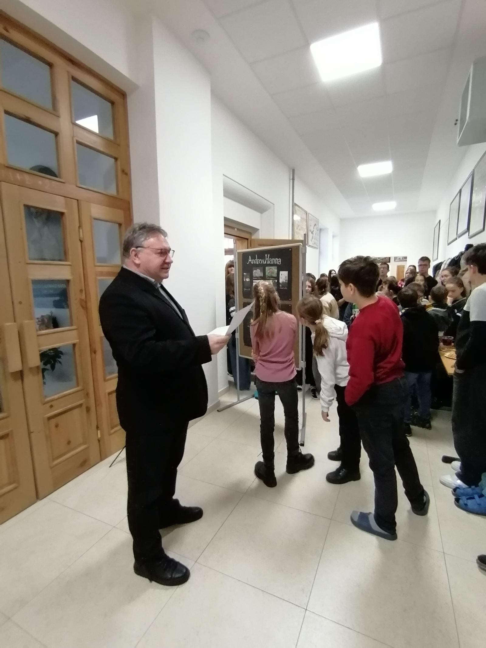 Az ünnepélyes kiállítást Földes Réka, 7.B osztályos tanulónk csodaszép fuvolajátéka nyitotta meg, majd osztályfőnöke, Mózes Endre tanár úr mondott ünnepi beszédet. A hangulat emelkedett volt, és a megnyitót egy kis agapé követte.