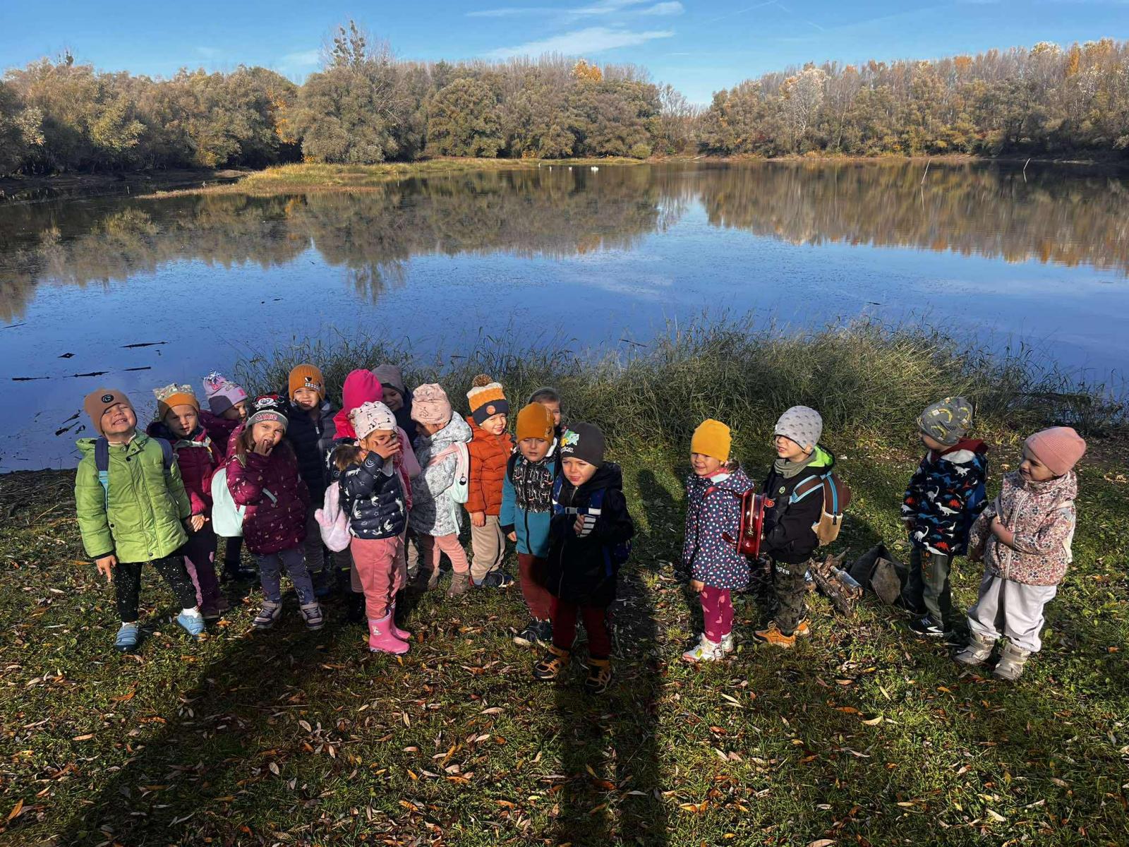 Október utolsó hetén ovisainkkal Gúta felé vettük az irányt, ahol két négylábú idegenvezető is csatlakozott hozzánk. Őszi kirándulásunk során a gyerekekkel közösen fedeztük fel a természet változásait, megfigyeltük a lombszínek gyönyörű átalakulását és a falevelek hullását. Sétánk közben megvizsgáltuk az erdő növényeit, megfigyeltük a mohát, a különféle leveleket és terméseket, valamint néhány állatot is sikerült meglesnünk. A természetben eltöltött idő alatt beszélgettünk az ősz jellemzőiről, az állatok téli készülődéséről és a természet körforgásáról. A kirándulás végén piknikeztünk, majd játszottunk egy jót. A nap vidám hangulatban telt és sok élménnyel gazdagodva tértünk vissza az óvodába.