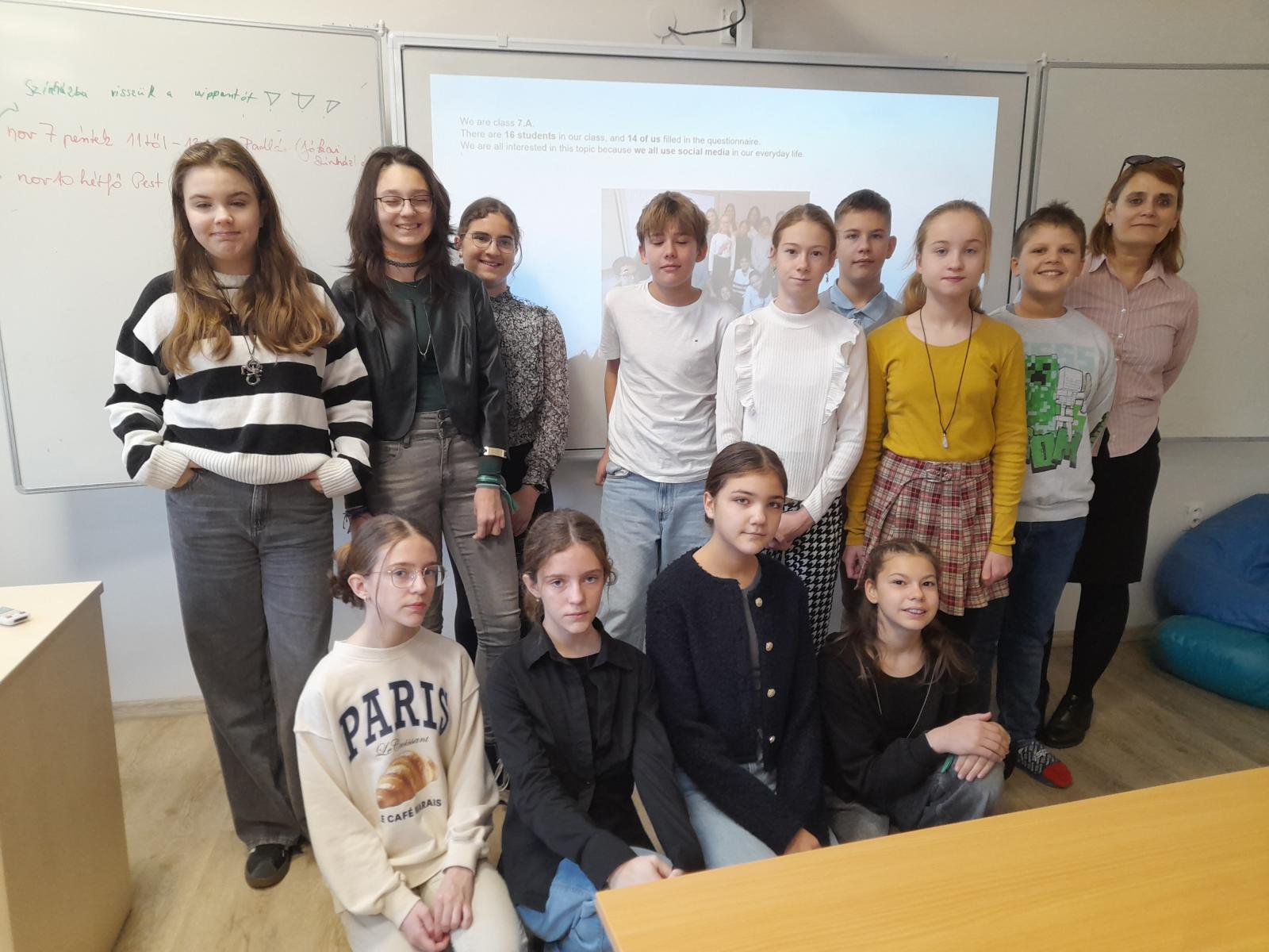 A gyerekek nagyon ügyesen és lelkesen dolgoztak, mindenki aktívan részt vett a felkészülésben és a prezentációban. A találkozón nem egyetlen diák képviselte az osztályt, hanem mindenki saját diát kapott, így minden tanuló bemutathatta a saját részét.