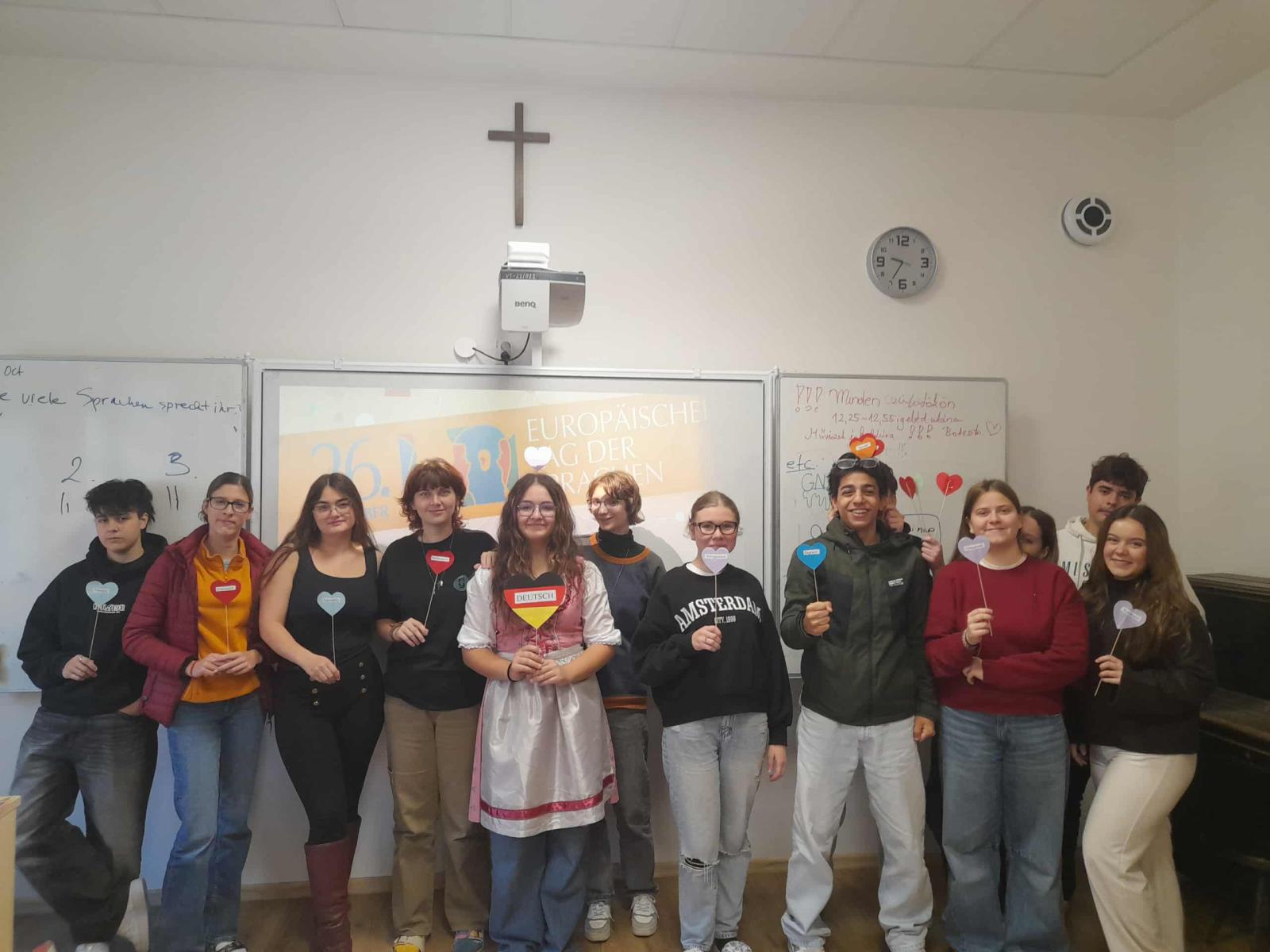 kezdeményezésbe, melynek céja, hogy felkeltse a diákok érdeklődését Európa nyelvi és kulturális sokszínűsége iránt, valamint felhívja a figyelmet a nyelvtanulás fontosságára. Idén gimnazistáink a német nyelvi órák keretén belül megtartott projektfoglalkozásokon ismerkedtek az európai nyelvekkel, nagy hangsúlyt fektetve a német nyelvű országok kulturális örökségére. A diákok érdekes előadásokat hallgattak, különféle kvízjátékokban mérhették össze tudásukat, tematikus posztereket készítettek, sőt még a méltán híres magyar poliglott szinkrontolmács, Lomb Kató nyelvtanulási módszereivel is megismerkedtek. A foglalkozások során a motiváció és a közösségi élmény egyaránt kiemelt szerepet kapott, a diákok nagy lelkesedéssel és aktívan kapcsolódtak be a projektmunkába, ami tovább erősítette a nyelvtanulás iránti elköteleződésüket. Októberben folytatjuk a Nyelvek Európai Napjához kapcsolódó projektfoglalkozásokat az angolórákon is!