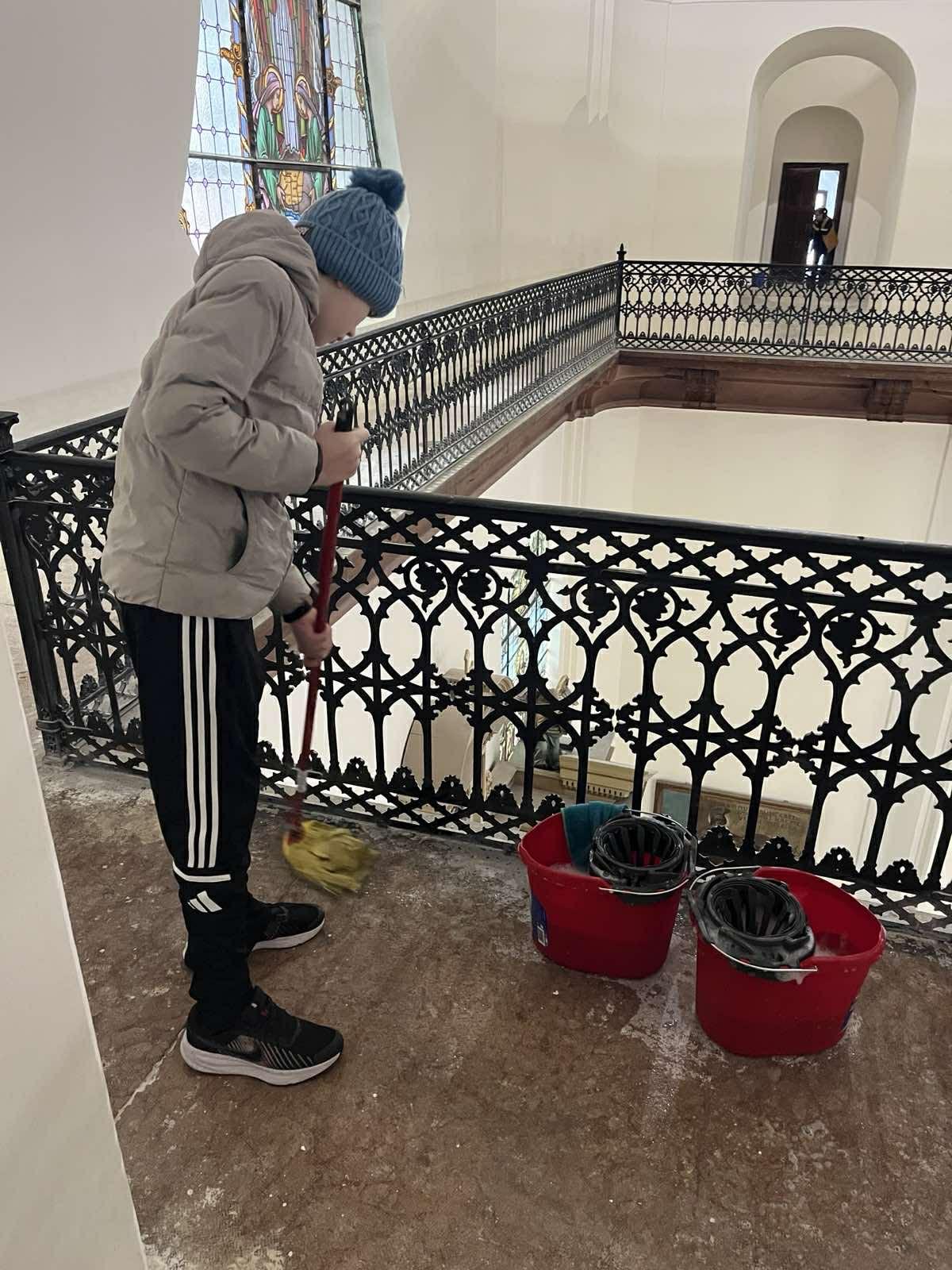 2025. november 22-én került sor a Szent András Bazilika búcsú előtti nagytakarítására. A felújítási munkák miatt mostanra több por, piszok halmozódott fel, mint általában, ezért is volt nagyobb szükség erre a munkára. Örvendetes tény, hogy a plébánia felhívására iskolánkból több szülő, diák, tanár is seprőt, porrongyot ragadott, s a takarítócsapat mintegy felét kitéve jelentős részt vállalt templomunk tisztává tételében. Köszönjük a segítséget, s köszönjük a tisztítószerek felajánlását is. Jóra törekvésüket áldja meg az Isten!