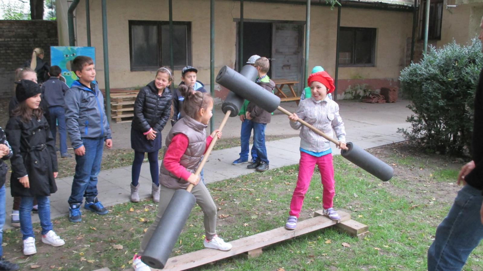 A mesemaratonon újabb mesékkel ismerkedhettünk, majd bábok formájában megelevenítettük az egyes mesehősöket. Megküzdöttünk a háromfejű sárkánnyal, összemértük erőinket és próbára tettük pontosságunkat. S a végén a jól megérdemelt táncház sem maradhatott el, ahol együtt mulatott leány és legény, hajadon és házas ember, ifjú és vén, azaz minden arra érdemes gyermek és pedagógus.