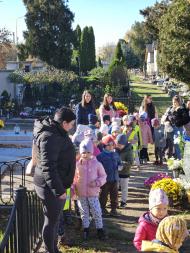 Mindenszentek ünnepe után az óvodás gyermekekkel ellátogattunk a temetőbe, ahol gyertyát gyújtottunk, és csendesen beszélgettünk arról, hogy a szeretet és a közös emlékek mindig velünk maradnak.
