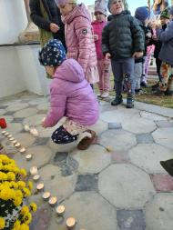 A gyerekek nyugodt, meghitt hangulatban figyelték a gyertyák fényét, a virágokat, és megtapasztalták az emlékezés békés, tiszteletteljes légkörét is.